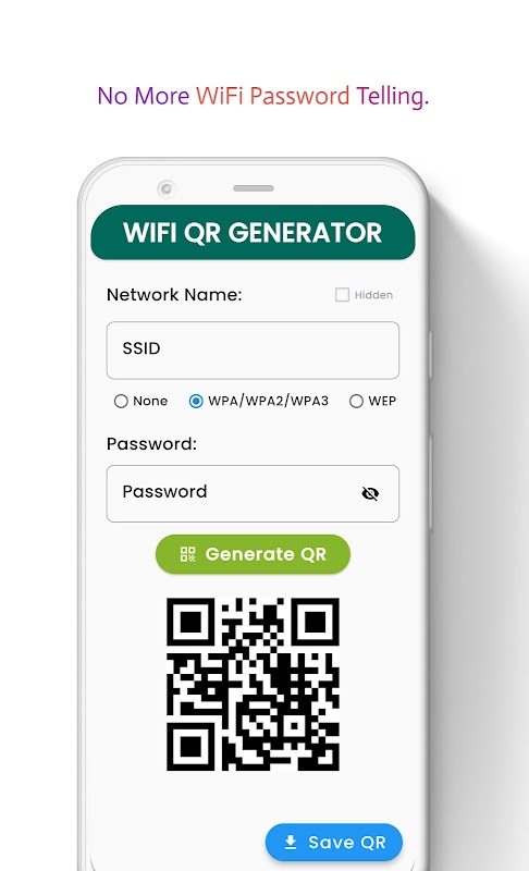 Apresentando a melhor solução de compartilhamento de WiFi! 🏆 Com nosso aplicativo, você pode facilmente criar um código QR para sua rede Wi-Fi e compartilhá-lo com qualquer pessoa, permitindo que eles se conectem à sua rede em segundos. Chega de lutar para lembrar senhas ou digitá-las manualmente, nosso aplicativo torna o compartilhamento de WiFi simples e contínuo. 🎉
