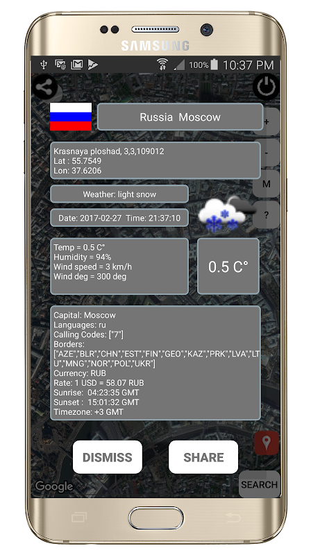 Mundial WiKi Mapa app encontra a sua localização e permitir-lhe partilhar a sua localização Via WhatsApp, email, etc .. ou Facebook com a família e amigos, e fornecê-lo com todos os detalhes de qualquer local de sua escolha em todo o mundo.