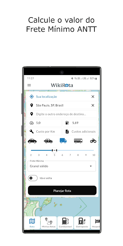 Planeje sua viagem obtendo custos de pedágio, combustível e eletropostos na rota