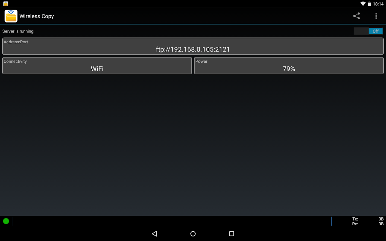 Wireless Copy working as FTP server lets you copy files to/from your phone or tablet over a WiFi or mobile network via FTP protocol.