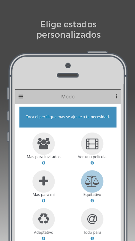 · Seleccionar un estado personalizado para situaciones comunes de uso, como ver una película en un dispositivo, más para invitados, más para mí, etc.