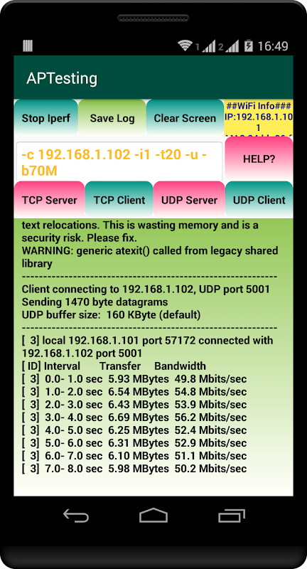 => Agora você pode usar a ferramenta tarffic iperf em seu telefone. Não é necessário root.