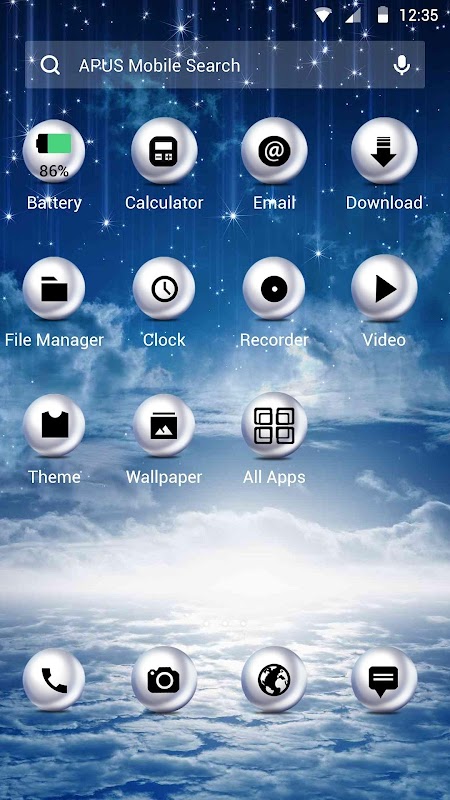 Most download APUS Launcher theme, with beautiful wallpaper inside.