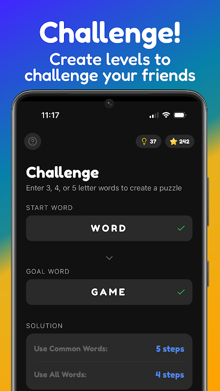 Conecte palavras em quebra-cabeças de bolhas. Troque letras para encontrar o caminho mais curto!