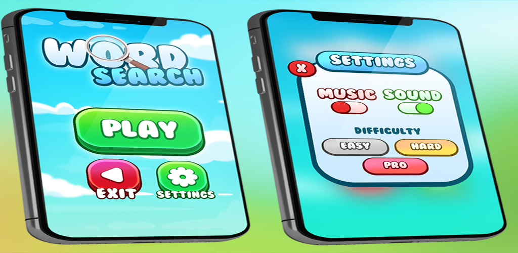 Avance por vários níveis e dificuldades e encontre palavras escondidas.