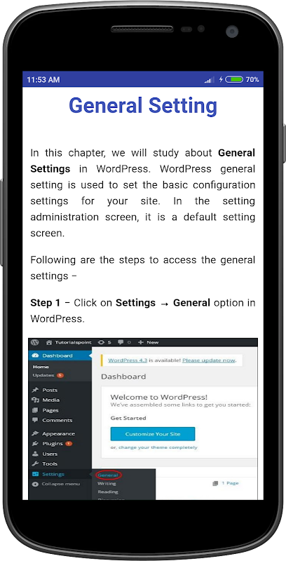 Wordpress Tutorial app collections of Categories are below and provide all this Topic Like,