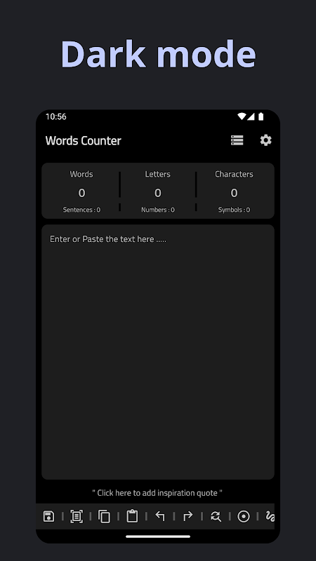 • Copiar, Colar e Limpar: Botões essenciais e de fácil acesso para otimizar seu fluxo de trabalho. • Suporte ao Modo Escuro: Reduza o cansaço visual com nosso elegante tema de modo escuro, perfeito para sessões de escrita noturnas.