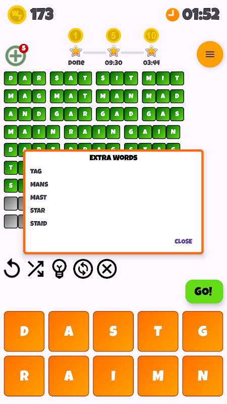 Pare de tentar adivinhar e comece a provar suas habilidades! Nós lhe damos as letras de uma palavra aleatória de 10 letras e você forma o máximo de palavras possível com elas. Sua pontuação depende de quantas palavras você consegue encontrar e da rapidez com que completa o tabuleiro. Encontre palavras extras para ganhar mais moedas e use-as para resolver palavras com as quais você está com dificuldade. Aprimore suas habilidades de encontrar palavras e melhore sua ortografia – é a avaliação diária definitiva para qualquer entusiasta de jogos de palavras.