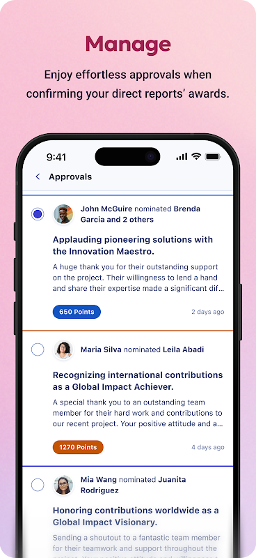 • Um processo de aprovação simplificado para confirmar que novos prêmios foram enviados aos seus subordinados diretos