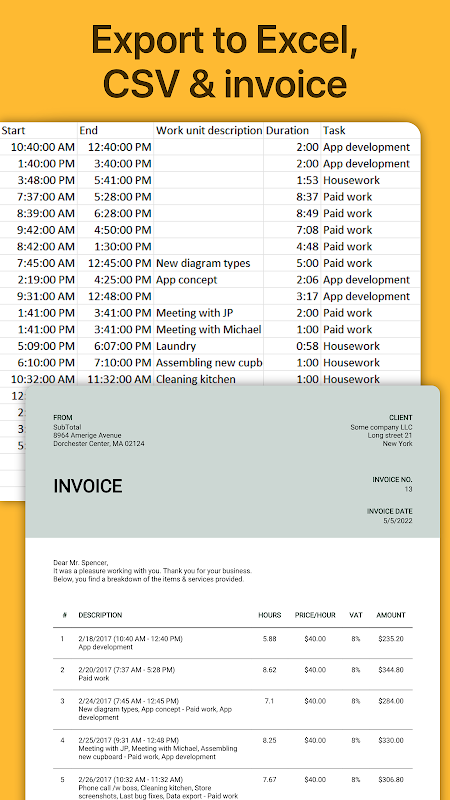 Acompanhe facilmente suas horas de trabalho - organize, analise e exporte-as. Perfeito para freelancer, trabalhadores horistas, funcionários ou qualquer outra pessoa que queira acompanhar seu tempo de trabalho.