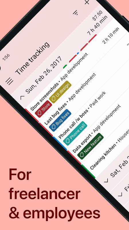 • Rastreamento de tempo livre, melhor com a versão Pro. Período de teste gratuito de 7 dias incluído.
