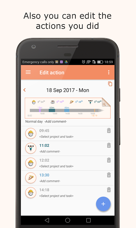- Permite personalizar a preferência: por ex. inserindo seu tempo alvo diário para trabalho e almoço e suas preferências