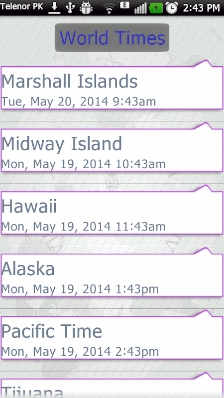 Note the time all over the world in your hand.!