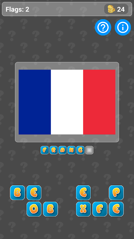 Você gosta de jogos cerebrais ? Você quer aprender bandeiras do mundo ? Jogar este teste e se tornar o mestre de jogos cerebrais . Saiba todos mundo países e suas bandeiras na forma de uma imagem teste agora!