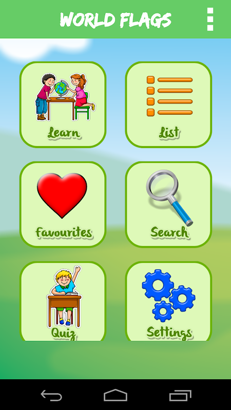 Este aplicativo pode ser usado para se familiarizar com diferentes países e bandeiras nacionais.