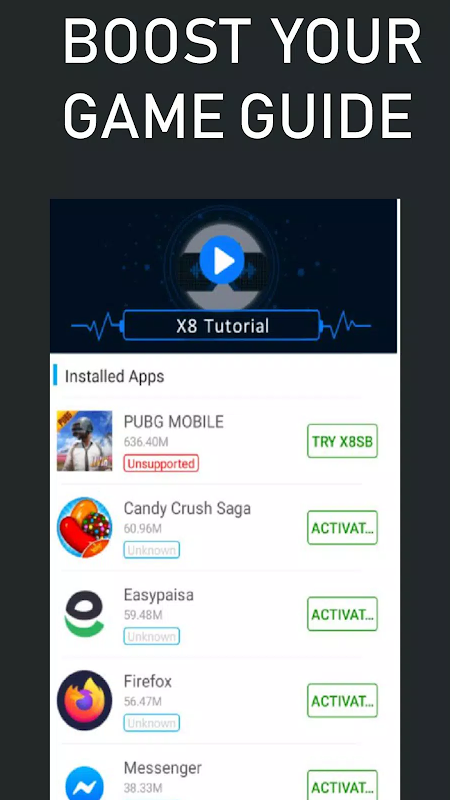 This app is ONLY a GUIDE for X8 Sandbox app. Nothing to do with "X8 Sandbox".
