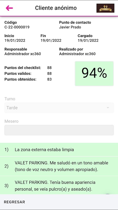 - Cliente incógnito (cliente mistério), observação e qualquer tipo de lista de verificação com os resultados on-line e enviar tarefas imediatas a resultados negativos.