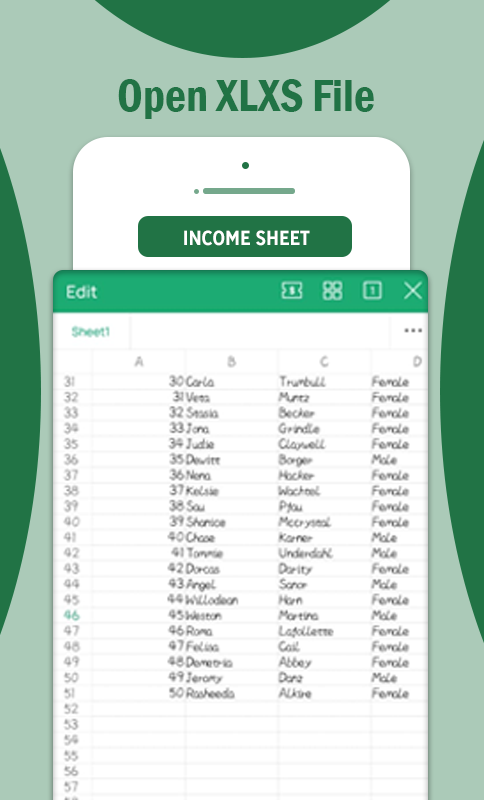 O principal objetivo para desenvolver este XLXS File Reader: XLXS Viewer, XLSX file Opener App é abrir todos os arquivos de planilhas de visualização xlsx do seu dispositivo Android. Você pode abrir e visualizar todos os tipos de arquivos Xlsx através deste leitor de arquivos xlxs: abridor de arquivos xlxs. Se você está procurando o aplicativo editor de planilhas, este aplicativo leitor de planilhas para Android: o visualizador de arquivos xlxs definitivamente ajudará você a editar arquivos de planilhas. A melhor maneira de abrir arquivos XLS é simplesmente instalar este visualizador XLSX: visualizador de arquivos XLS e abrir seus arquivos XLS.