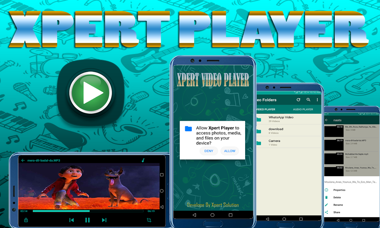 O Xpert Player 777 é uma combinação de reprodutor de vídeo e áudio e reproduz todas as músicas (vídeo/áudio) do seu telefone em um único reprodutor.