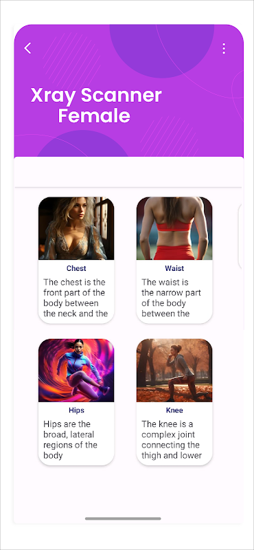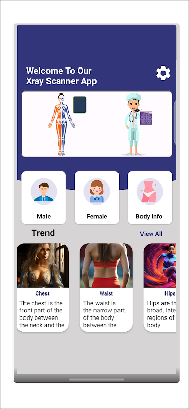 Apresentando o aplicativo X-ray Scanner Body Scanner, uma ferramenta revolucionária que combina perfeitamente tecnologia de ponta com insights educacionais para fornecer aos usuários uma experiência imersiva no mundo da anatomia humana. A brincadeira com scanner corporal e scanner de raio X é uma ferramenta abrangente projetada para ajudá-lo a orquestrar truques divertidos com seus amigos, familiares e colegas. O simulador de scanner de raio X e o aplicativo de scanner de raio X abrangem dois recursos principais, como Body Scanner e Body Information, oferecendo a exploração do corpo humano. Este aplicativo de câmera de scanner de corpo de raio X não é um aplicativo de scanner de corpo real para Android, este scanner de corpo inteiro é real o aplicativo é usado apenas para guia corporal e apenas para fins de entretenimento. Você não pode usar este aplicativo de scanner corporal de raio X real ou real para Android para câmera de remoção de pano. Este é um aplicativo gratuito de scanner corporal de raio X onde meninas e meninos jogam níveis diferentes para saber sobre todo o corpo humano. Este aplicativo de simulador de médico de raio-x com câmera de raio-x de scanner corporal que irá treiná-lo e entretê-lo com varredura corporal. Percorra os conjuntos de imagens arrastando o dedo