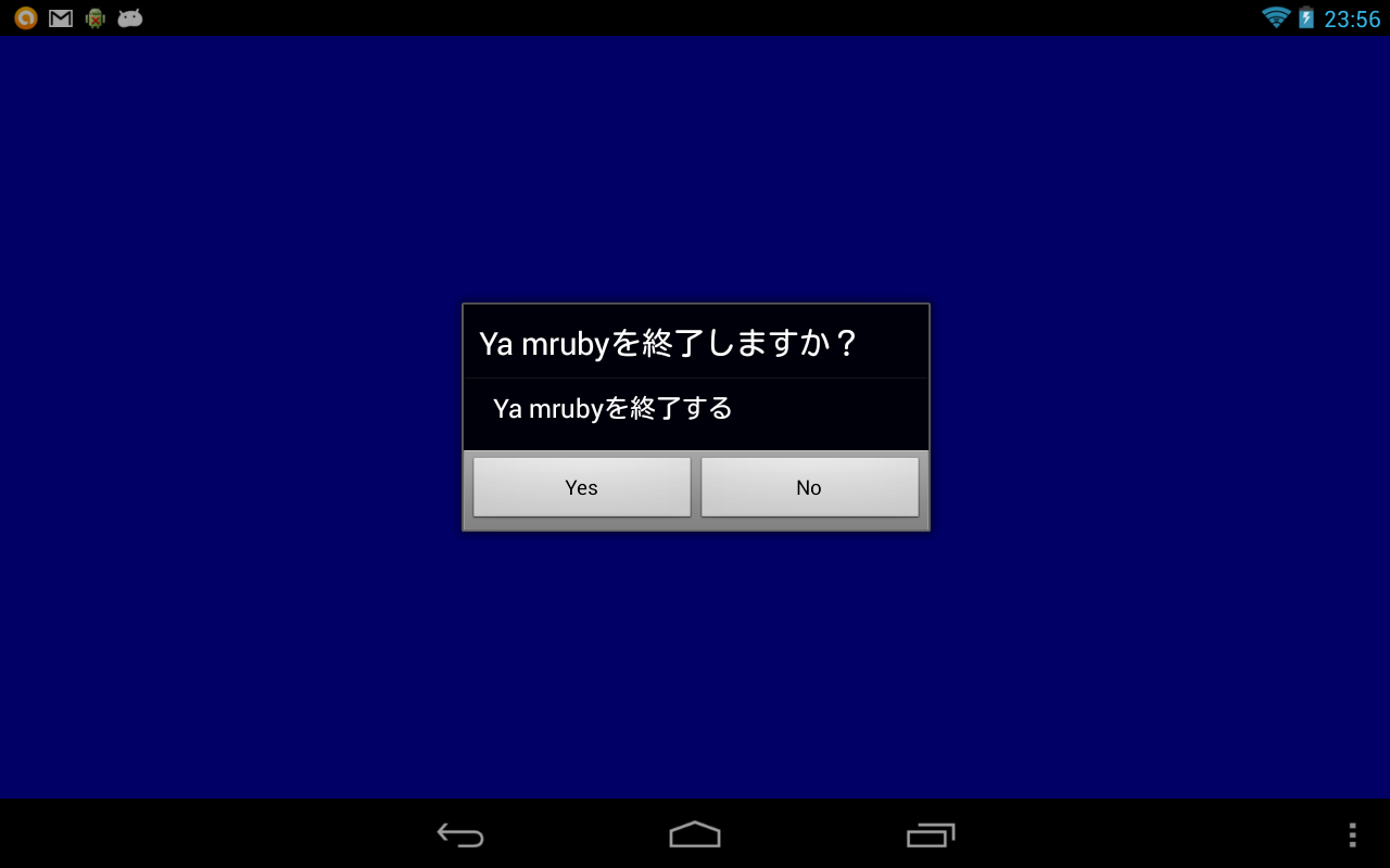 Ya mubyは、このMarida2を利用してAndroidを操作すると仕組みとなっています。Ya mruby実行すると、yamruby.rb等いくつかのスクリプトがSDメモリカードの/Yamruby下にコピーされ、Yamruby.rbが実行されます。