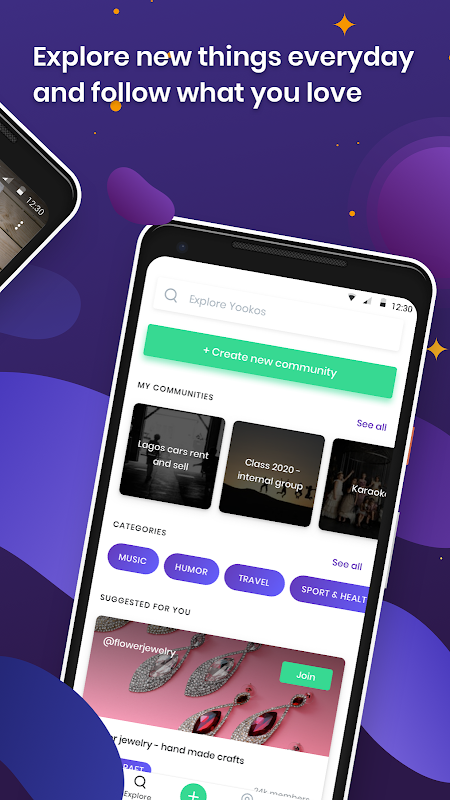 Yookos - conecte-se com pessoas e explore o Marketplace diretamente do seu telefone.