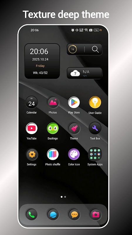 O Deep OS Launcher é um launcher preto/escuro que deixa seu celular estiloso e poderoso. Usando o Deep OS Launcher, você obtém velocidade, beleza e elegância no design, sem perder a personalização do Android.