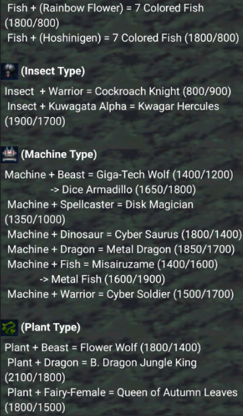 -Fusion List : List of the general fusion you can use to win the duel.