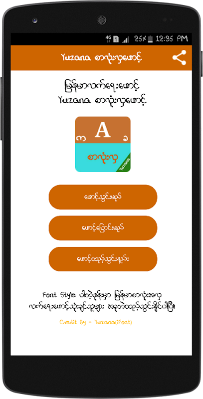 Yuzana ျမန္မာလက္ေရးေဖာင့္ ကို အသံုးျပဳရန္ Root မလိုပါဘူး