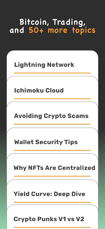 * Gamificado - aumente sua classificação, faça amigos, ganhe jogos e ganhe recompensas de bônus em Bitcoin. Aprender deve ser divertido, não chato.