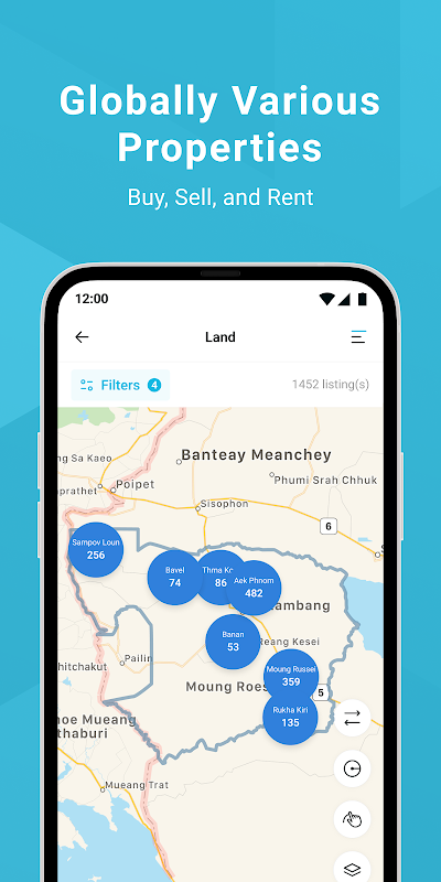 - Fornece mais de 100.000 listagens de diferentes tipos de propriedade em todo o Camboja