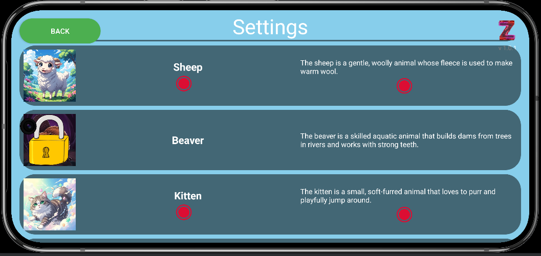 Para acessar as configurações, basta adicionar dois números. Nas configurações, alguns temas e espécies de animais podem ser desbloqueados permanentemente assistindo a um anúncio.