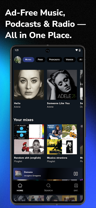 Seja música, podcasts, vídeos, trailers, rádio ou música de IA, o Zene reúne tudo — de forma bonita, fluida e 100% sem anúncios.