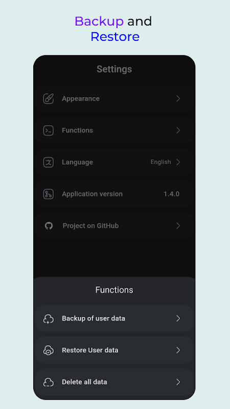 📂 Reservar cópia: Сохраняйте данные в безопасности с функцией резервного копирования.