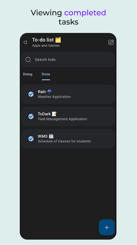 📋 Сортировка задач: Легко помечайте задачи как выполненные или невыполненные.