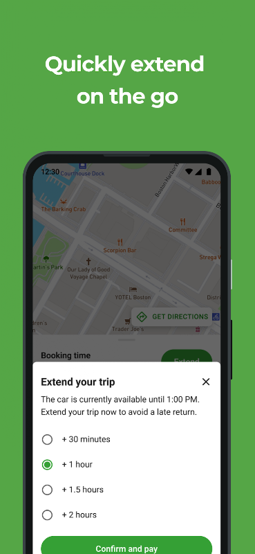 Finding and unlocking your reserved car? Fast and easy. The app has step-by-step directions to the Zipcar parking spot. When you're done, just return it to the same spot.