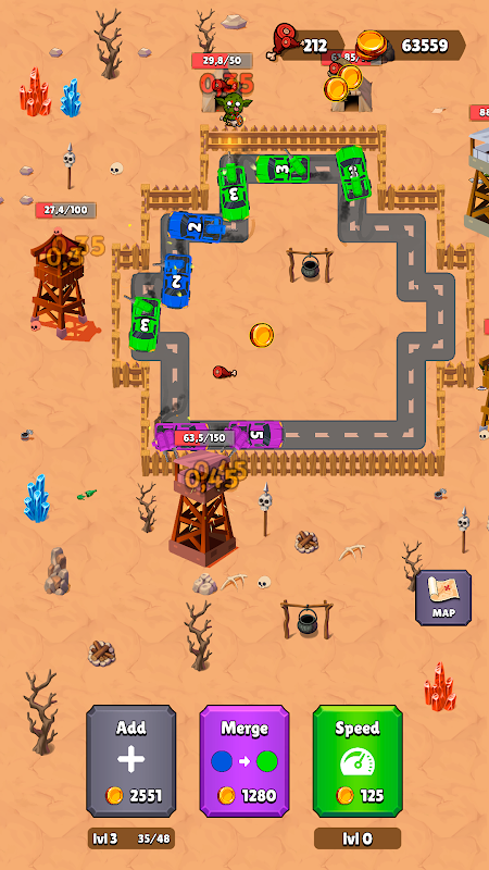 Comece sua aventura com um carro e combine veículos para criar máquinas imparáveis de destruir zumbis! Seus carros atiram em zumbis automaticamente, destroem torres zumbis e expandem seu território. A cada nível, o desafio aumenta — você está pronto para a batalha final?