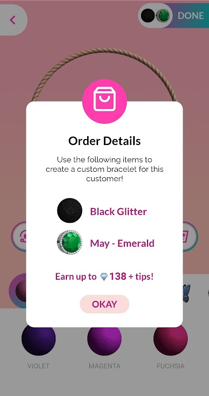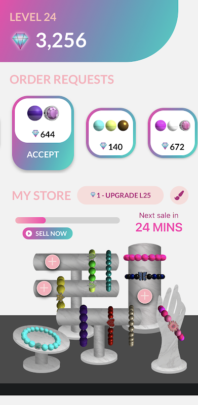 Earn diamonds and upgrade your boutique, unlocking new aesthetics and working your way up to the world's fanciest jewelry business!