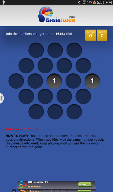 The world is all about numbers! Here comes a game to stir your brain juice with an exciting numbers exercise. It’s fun, it’s easy; just keep combing the same numbers and get a bigger number and then combine the bigger number with the same number and keep improving your score. The higher the score, the better the brain.
