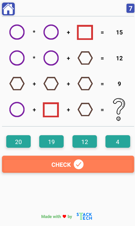 A game that stimulates your brain with different types of equations.