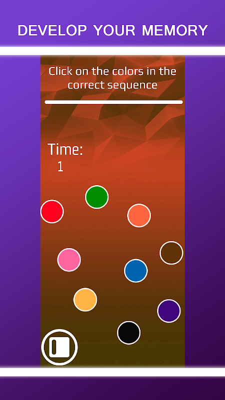 You will be given 10 seconds, during which you will have to memorize a sequence of 4 or more colors! Then you need to follow the sequence and click on the colors! There is also a new mode in which you need to temporarily select the color corresponding to the text! Seems simple? Download the game and understand that you were wrong!)