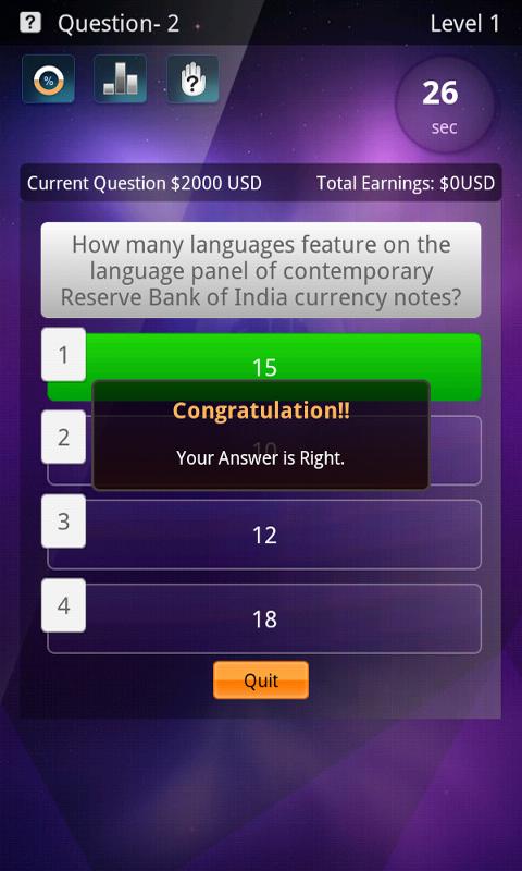 It is a quiz game based on popular TV shows. It has a reasonably large collections of questions, which appear randomly for the user to answer. It includes features like quiz levels, lifelines, score points etc. Multiple user accounts are allowed to facilitate competition in closed user groups and comparing results of each user. A nice experience worth trying.