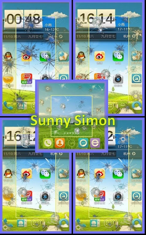 - Start the app, and touch the screen, you can see the screen “broken up” wherever touched, with sound and vibrate.