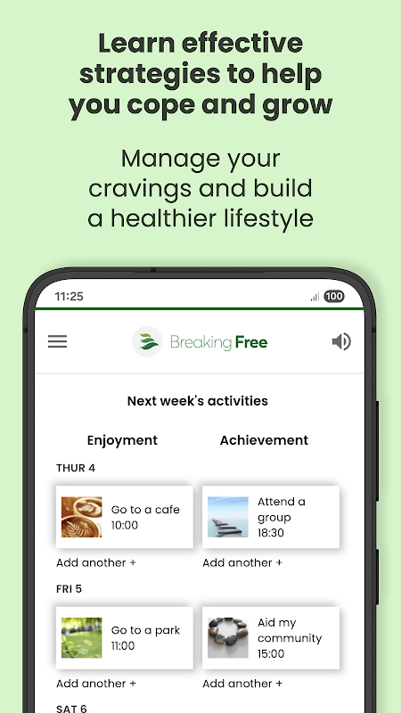 Breaking Free gives you a safe, private, and clinically validated way to take control of your recovery — anytime, anywhere.