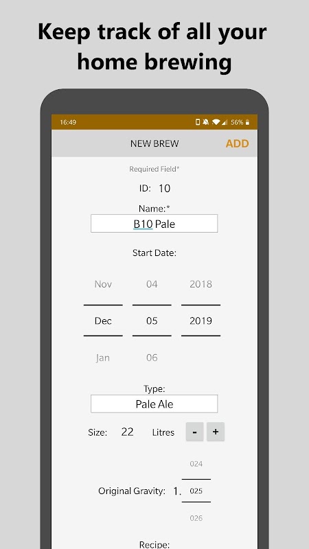 Home brewing app. Oversee your home brew beer. Save brew dates & recipes