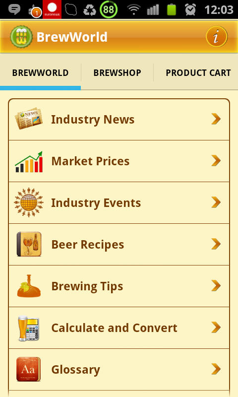 With the BrewMalt® section you will be even closer to the brewing and malting industries by having access to the latest news, market prices and events. With BrewMalt® you will be even more brew-conscious by enjoying access to beer recipes, brewing tips and calculators, brewing glossary, beer history etc.