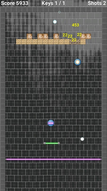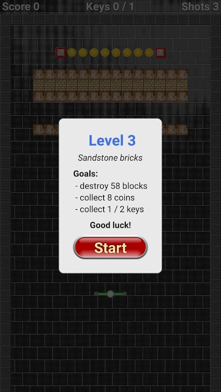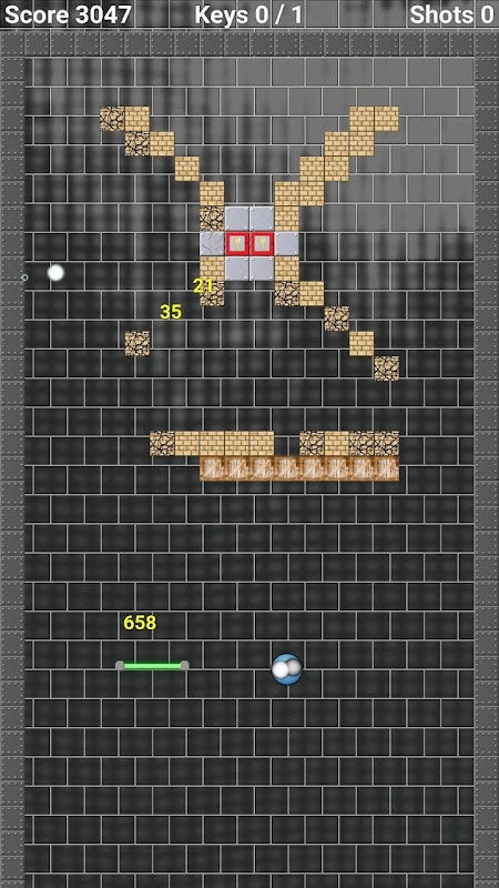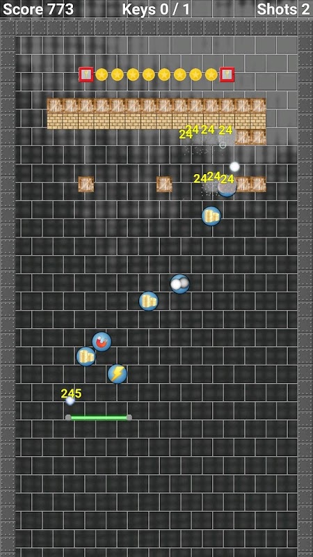 At the easier levels in Brick Aimer you should destroy wooden boxes and sandstone blocks in addition to collecting coins and keys. As the difficulty increases your ball will move faster and you will face plate blocks, brick walls and granite stone. In the game you will also experience moving elevator blocks, portals that transport your balls and force fields that will affect the trajectory of your balls.