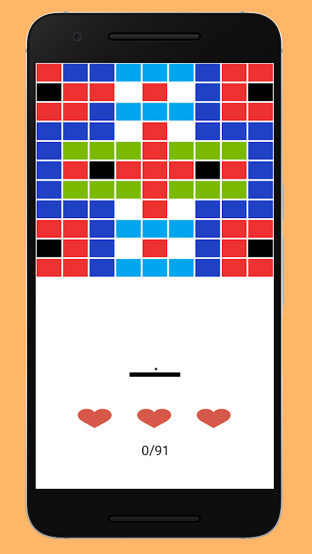 bounce the ball around the screen to destroy the coloured blocks. Black bricks are unbreakable