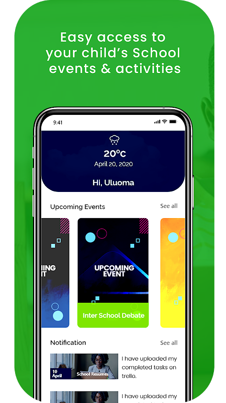 The Brighter Brain Parent Application, provides a real-time access for all parents to monitor the performance of their children in school, communicate with the school instantly, catch in on their children's activities (live), provide instant feedback on the performance of their children directly to instructors/teachers. The Brighter Brain also helps to monitor tuition payment and track payment receipts.