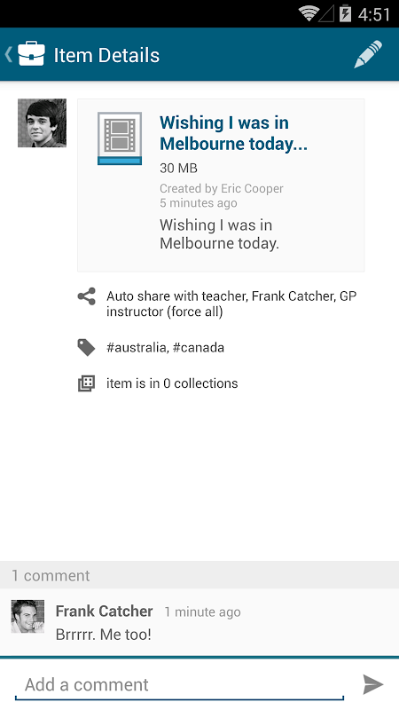 • Comment on other learners’ shared items and feedback